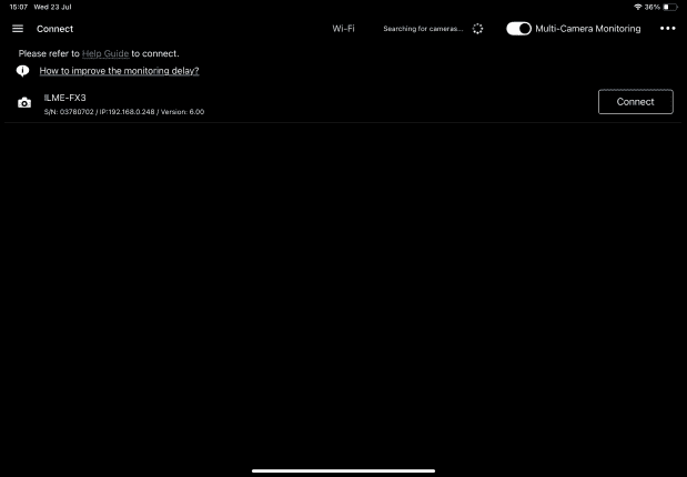 Once all cameras are online, connect your iPad to the same Wi-Fi network. Open the Monitor & Control App, and toggle “Multi-Camera Monitoring” in the top-right corner.